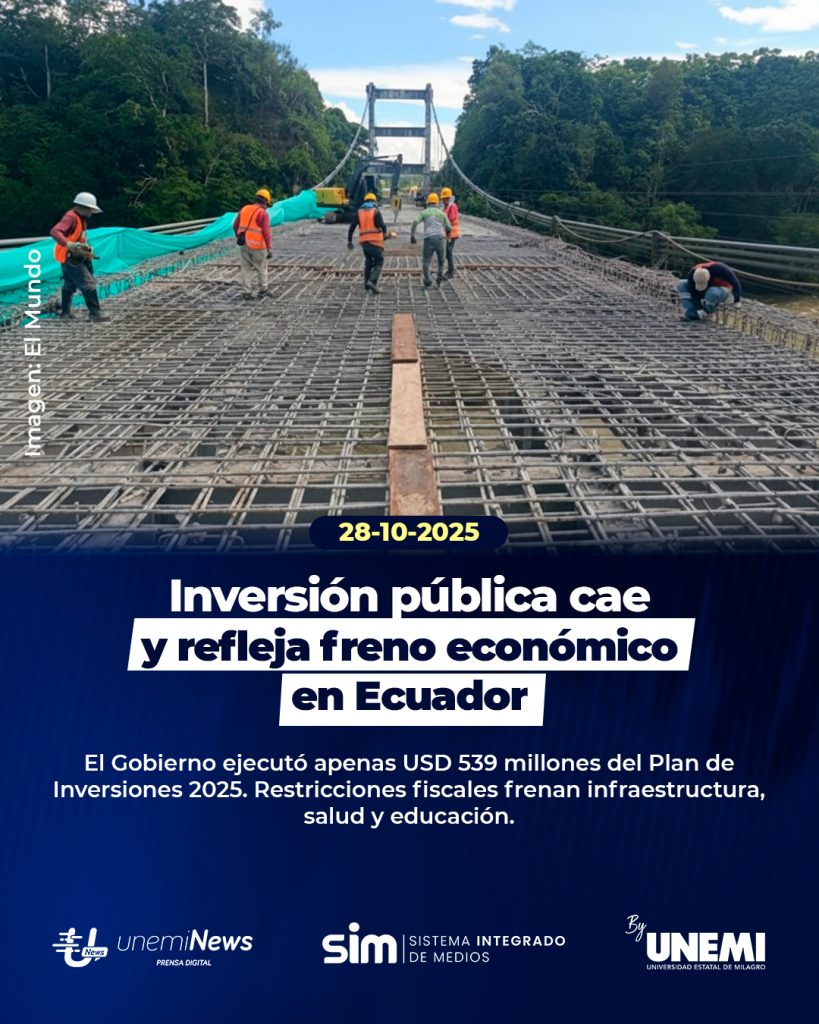 La ejecución del Plan Anual de Inversiones 2025 alcanza apenas el 42 % hasta septiembre, con USD 539 millones invertidos de los 1.278 millones previstos. La baja ejecución refleja la desaceleración de la obra pública ante la falta de liquidez y la prioridad del gasto corriente.
