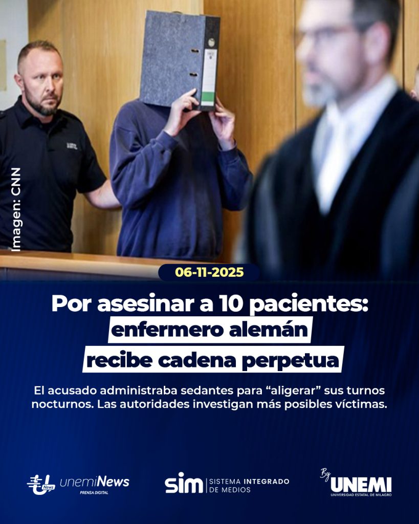 Un enfermero de cuidados paliativos fue condenado a cadena perpetua este miércoles en Alemania, tras ser declarado culpable del asesinato de 10 pacientes mediante inyecciones letales, así como del intento de asesinato de otros 27.