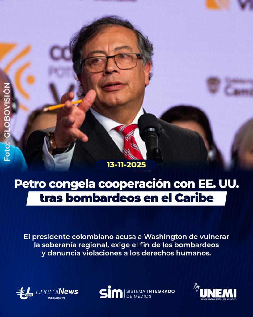 El presidente de Colombia, Gustavo Petro, ordenó suspender toda comunicación entre la inteligencia de la fuerza pública y las agencias de seguridad de Estados Unidos, hasta que cesen los ataques con misiles a embarcaciones sospechosas de narcotráfico en el mar Caribe. Petro justificó la medida señalando que la lucha contra las drogas “debe subordinarse a los derechos humanos del pueblo caribeño” y denunció que las operaciones estadounidenses violan la soberanía de la región y el derecho internacional.